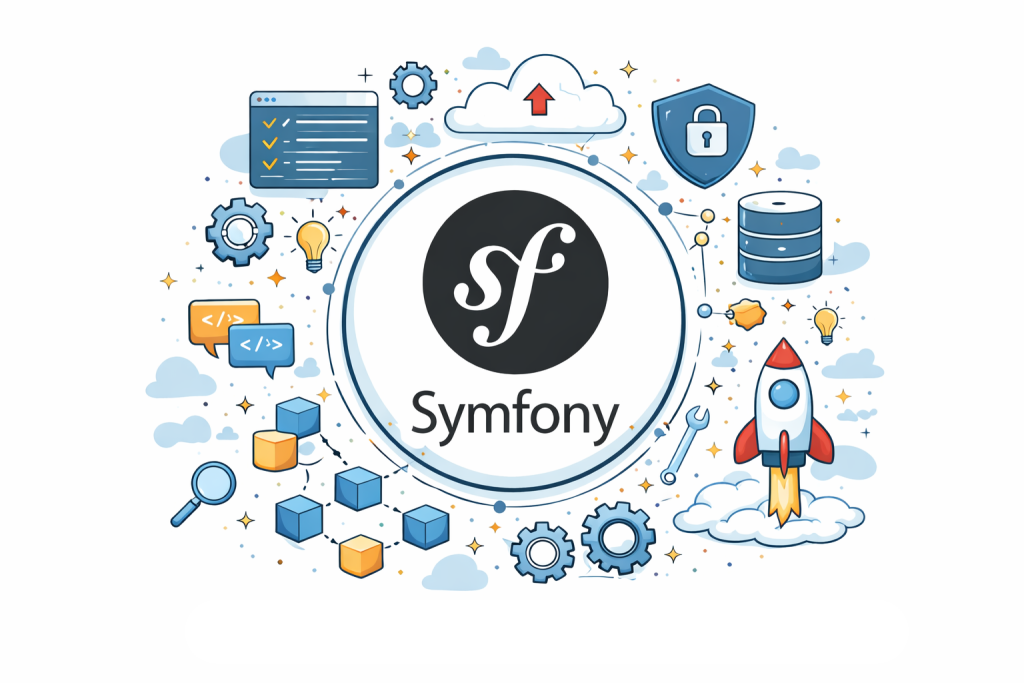 Symfony est un socle PHP très utilisé pour les applications web sur mesure. Il encourage une séparation nette des responsabilités (contrôleurs, services, domaine), une gestion sérieuse de la configuration, de la sécurité, des erreurs, et de l’accès aux données. Il s’intègre naturellement avec des briques utiles : authentification, permissions, jobs asynchrones, cache, tests, documentation d’API.