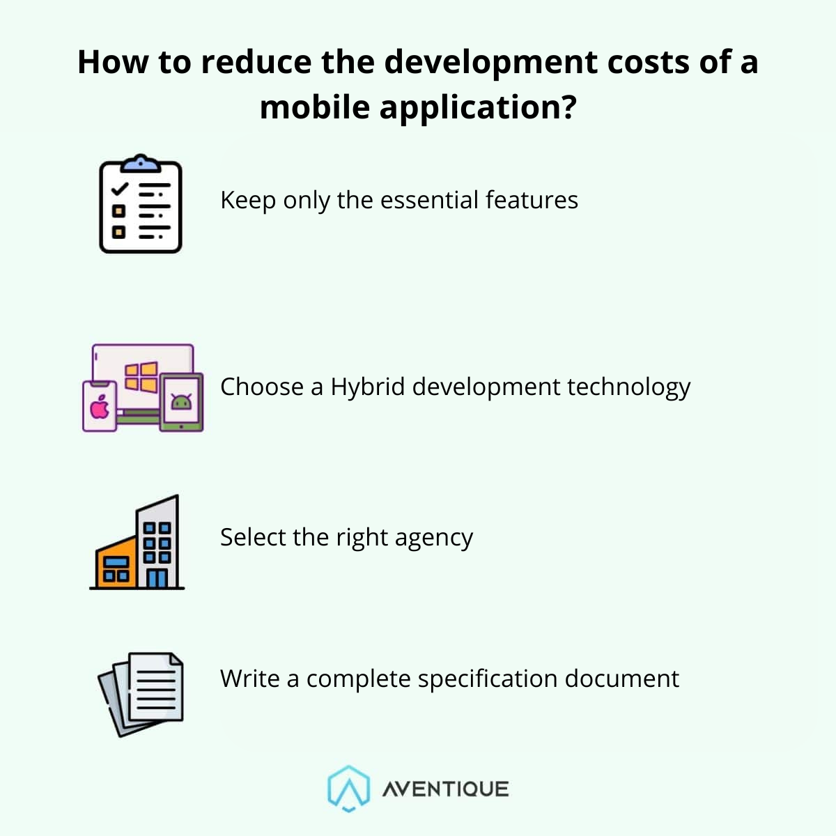 Take the time to draft a clear and exhaustive specifications document. By doing so, you will significantly reduce the risk of receiving a deliverable that does not meet your expectations. You will also help your provider accurately estimate the time and budget required for your mobile application (see our mobile development offer).